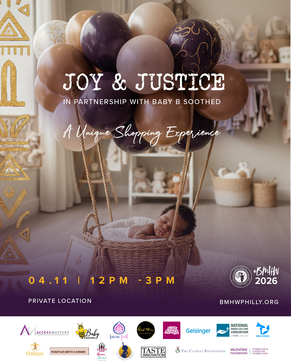 Join us for the Rooted in Joy & Justice Baby Boutique hosted by Oshun Family Center & Baby B Soothed. This is a beautifully curated experience designed to support, uplift, and celebrate parents and caregivers during Black Maternal Health Week. This isn’t just a giveaway! It’s an intentional space where families can connect, learn, and receive essentials with care and dignity. You’ll move through thoughtfully designed stations for parenting education, creativity, family movement (like yoga!), and shopping for baby must-haves and nice-to-haves. Every family will leave with diapers, wipes, personalized items, and resources, all wrapped in a community vibe full of joy, love, and support.